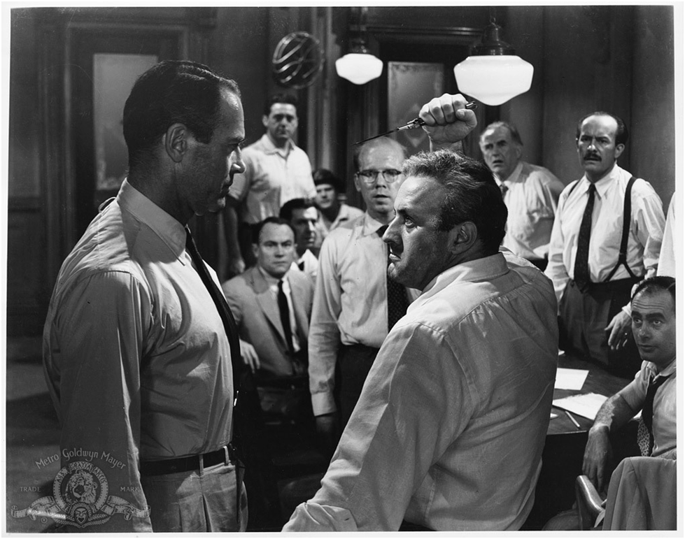 الفيلم من إنتاج Orion-Nova Productions لعام 1957 وقصة Reginald Rose وإخراج Sidney Lumet وسبق أن كان الفيلم مسرحية ومن ثم تم نقله لعالم السينما. ضمن الممثلين المبدعين في أداء أدوارهم كان هناك ممثلان حصلا على جوائز أوسكار في أفلام أخرى هما Martin Henry Balsam و Henry Jaynes Fonda وهو من أفلام الأبيض والأسود.