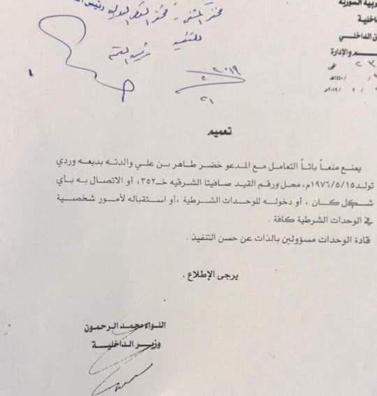 وبدأت القصة بانتشار صورة لتعميم صادر عن وزارة الداخلية "بعدم التعامل معه والاتصال به" ، البيان الذي اثار موجة من التساؤلات حول طبيعته ومضمونه وهوية الشخص المذكور في التعميم.