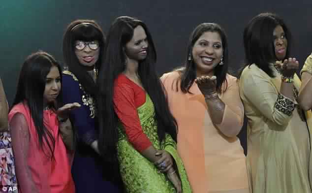 وذكرت وسائل اعلام ان 11 مشاركة رفعن رؤوسهن على الرغم مما تحملنه من ندوب، في مدينة مومباي وعرضن أزياء هندية وغربية بألوان مبهجة وتحدثن عن الثقة في النفس.