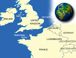 الموقع الجغرافي: تقع جزيرة جيرنزي في القنال الإنجليزي شمال غرب أوروبا ، تبعد عن 121 كم جنوب إنجلترا و48 كم شمال سواحل فرنسا.