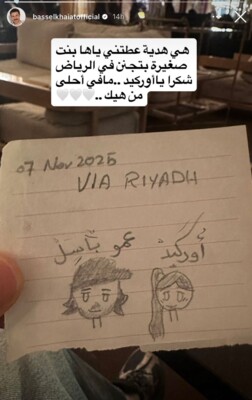 تلقى الفنان باسل خياط هدية من طفلة خلال زيارته الى العاصمة السعودية الرياض، قبل أيام.