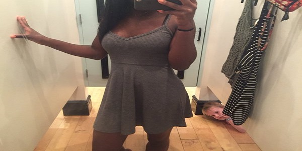 نشرت شابة صورة على تويتر اثناء تغير ملابسها في غرفة قياس الملابس في أحد المحلات .. ولكن من يراقبها من تحت الحاجز؟27/03/2016