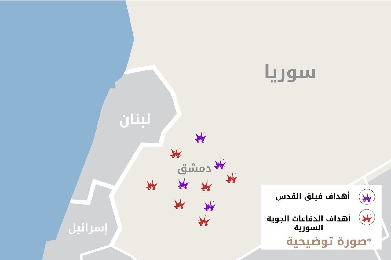 وبحسب ما نشر الناطق باسم الجيش الاسرائيلي على "تويتر" فان العدوان الاسرائيلي استهدف مواقع تابعة "لفيلق القدس" الايراني في سوريا ومن بينها "مواقع تخزين وسائل قتالية وفِي مقدمتها موقع داخل مطار دمشق الدولي بالاضافة الى موقع استخبارات إيراني ومعسكر تدريب إيراني".
